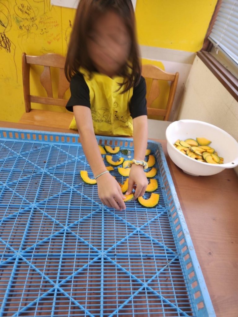 カボチャやナス、じゃがいもを乾燥させてドライ野菜を作りました。