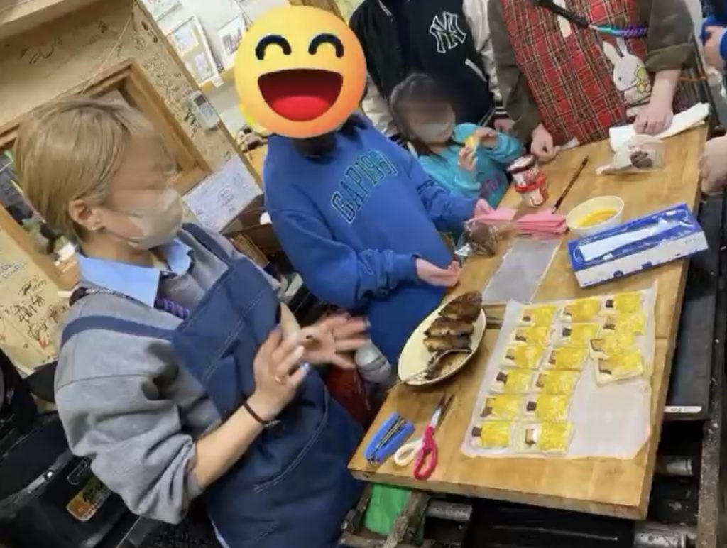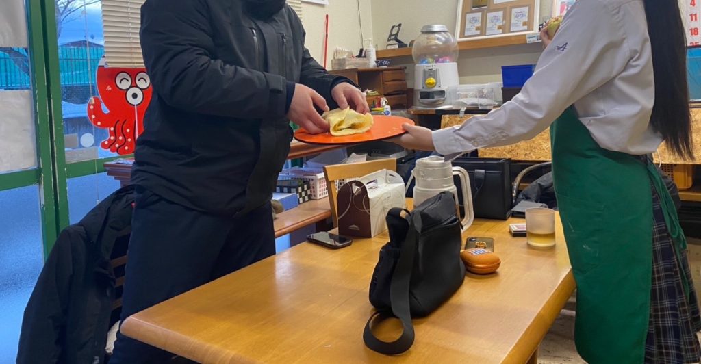 クレープを作り、来た人達に振る舞いました。