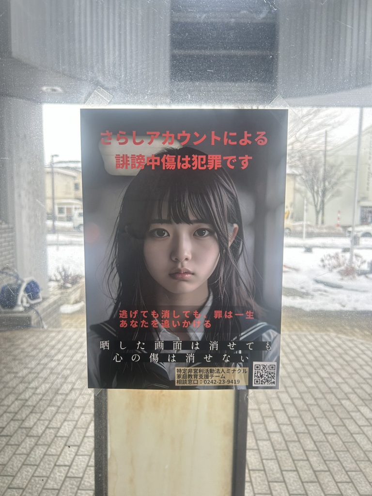 晒しアカウント防止ポスター、掲示始まりました。こちらは、会津坂下町中央公民館。