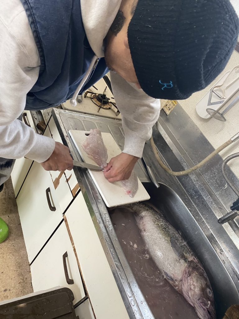 昨日購入きた魚を、ラーメン屋の店主に捌いていただきました。ボランティアありがとうございます✨️