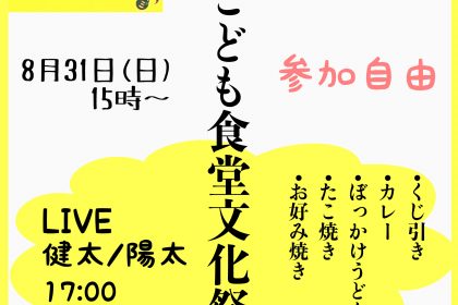 8/31(日)午後3時から7時まで、文化祭を開催致します! ご飯やくじ引き、そして音楽が楽しめる、こども達が作り上げるお祭りです🏮✨️...